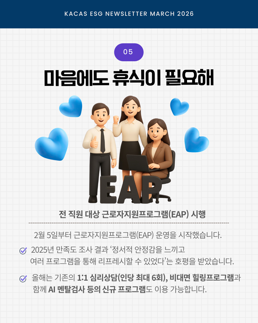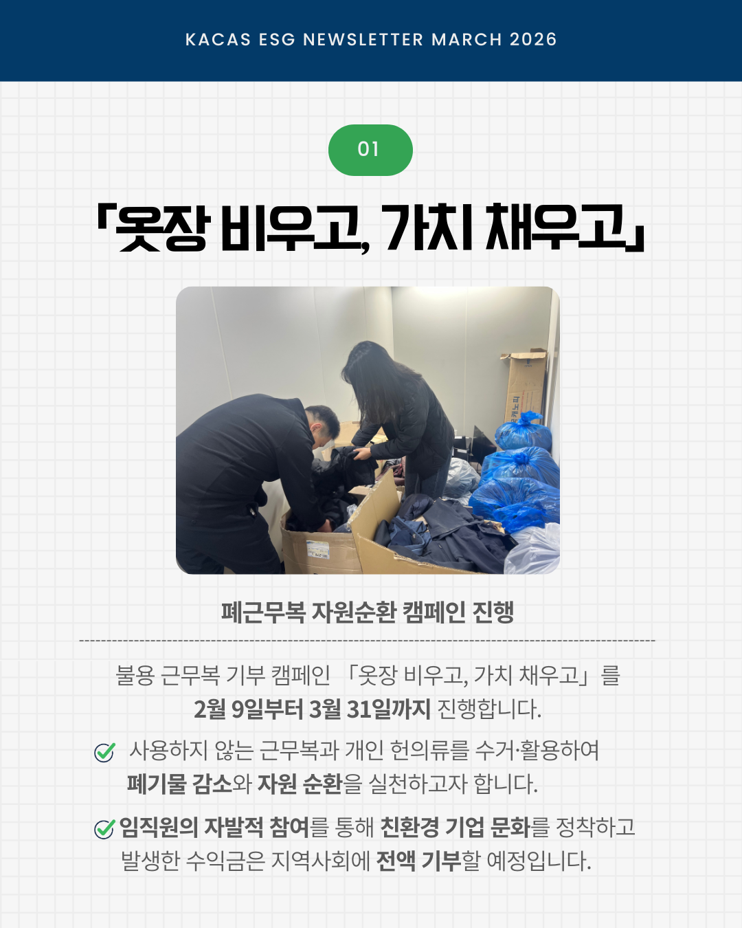 매월 ESG 뉴스레터는 공식 인스타그램(@kacas_official)에서도 만나볼 수 있습니다.