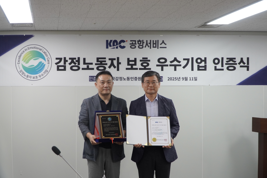 KAC공항서비스는 지난 11일, 공항서비스 분야에서 ‘감정노동자 보호 우수기업’ 인증을 획득했다.