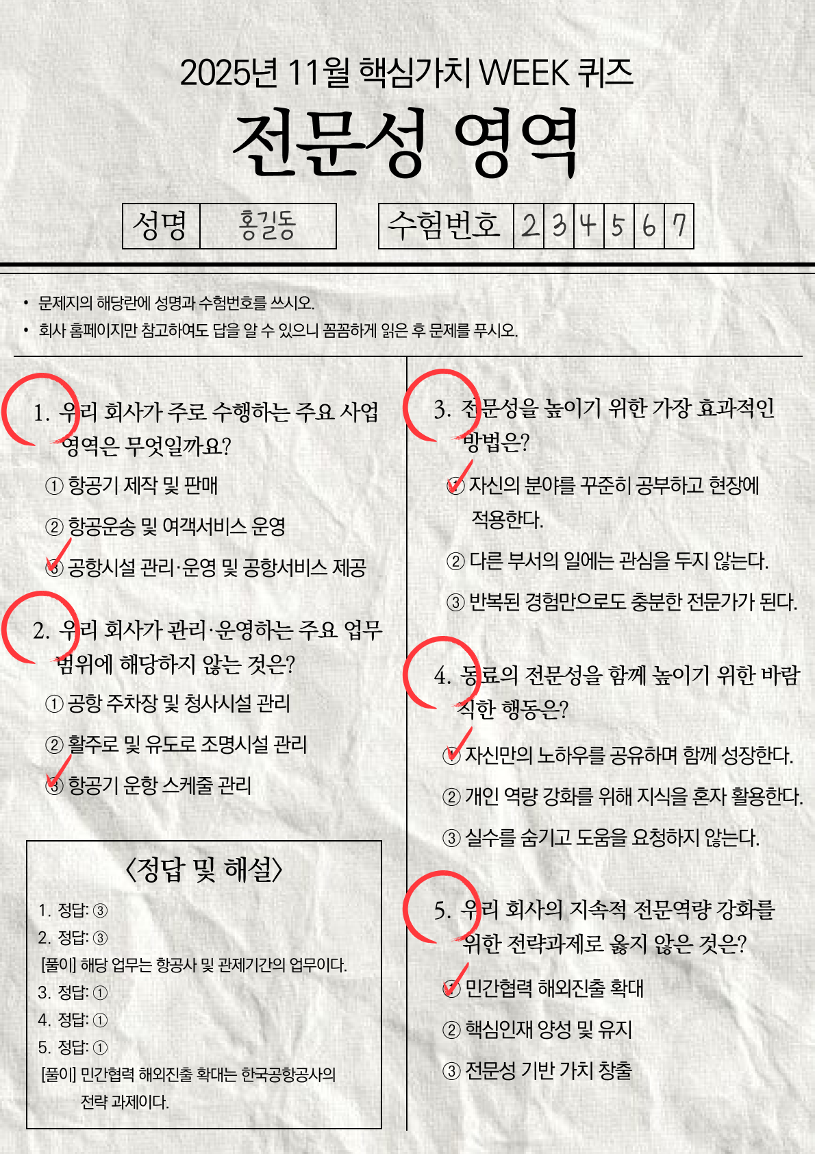 11월 핵심가치 WEEK 전문성 퀴즈 정답