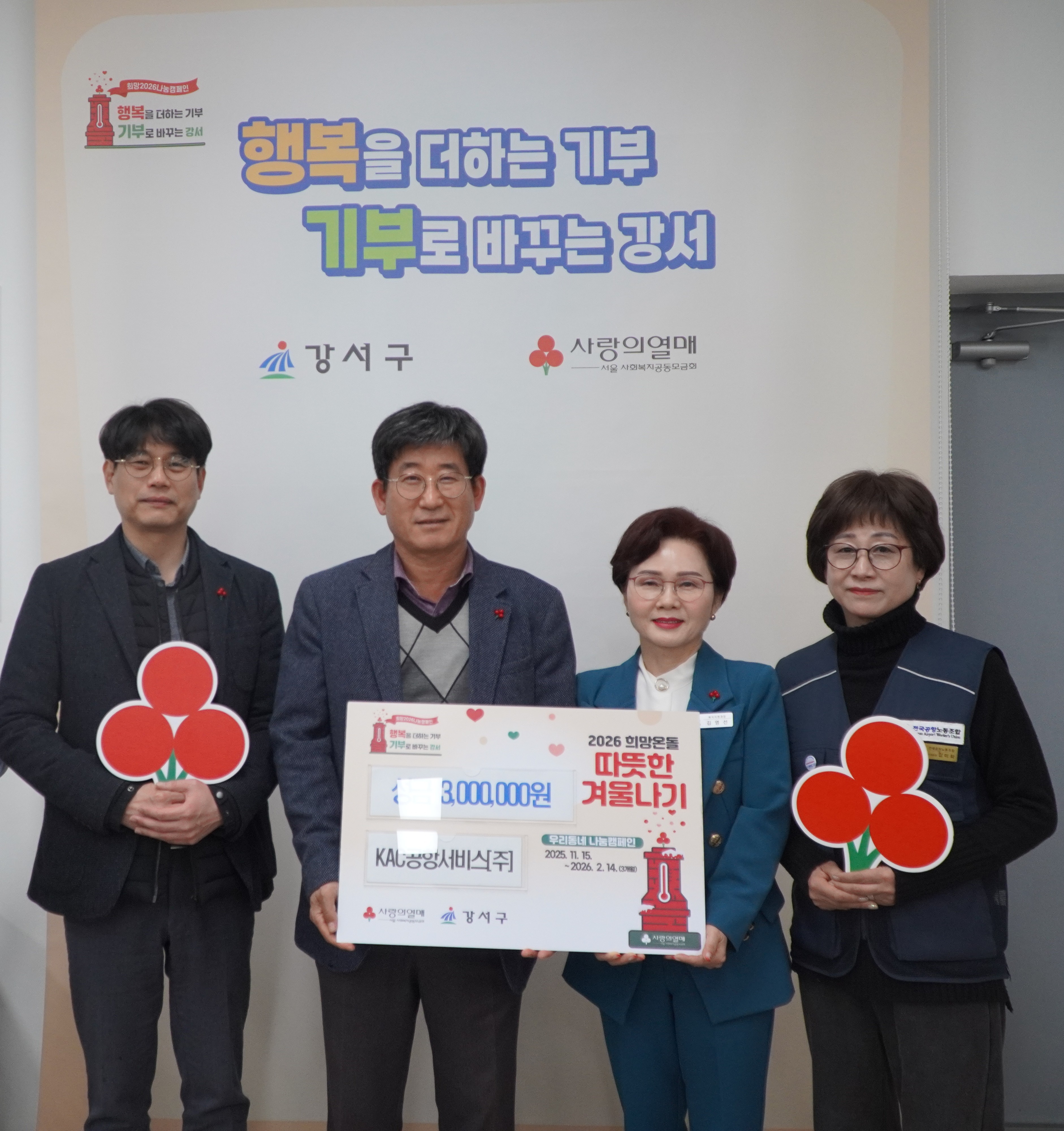 이에 대해 김영선 강서구청 복지지원과장은 “지난 해에 이어 동참해 주셔서 정말 감사하다. KAC공항서비스 노사의 마음을 이어받아 소중히 사용하겠다.”고 답했다.