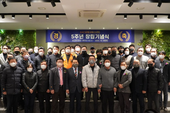 KAC공항서비스(사장 김금렬)는 회사 창립 제5주년을 맞아 2022.12.20.(화) 11:00~13:00에 창립기념식을 개최하였다.