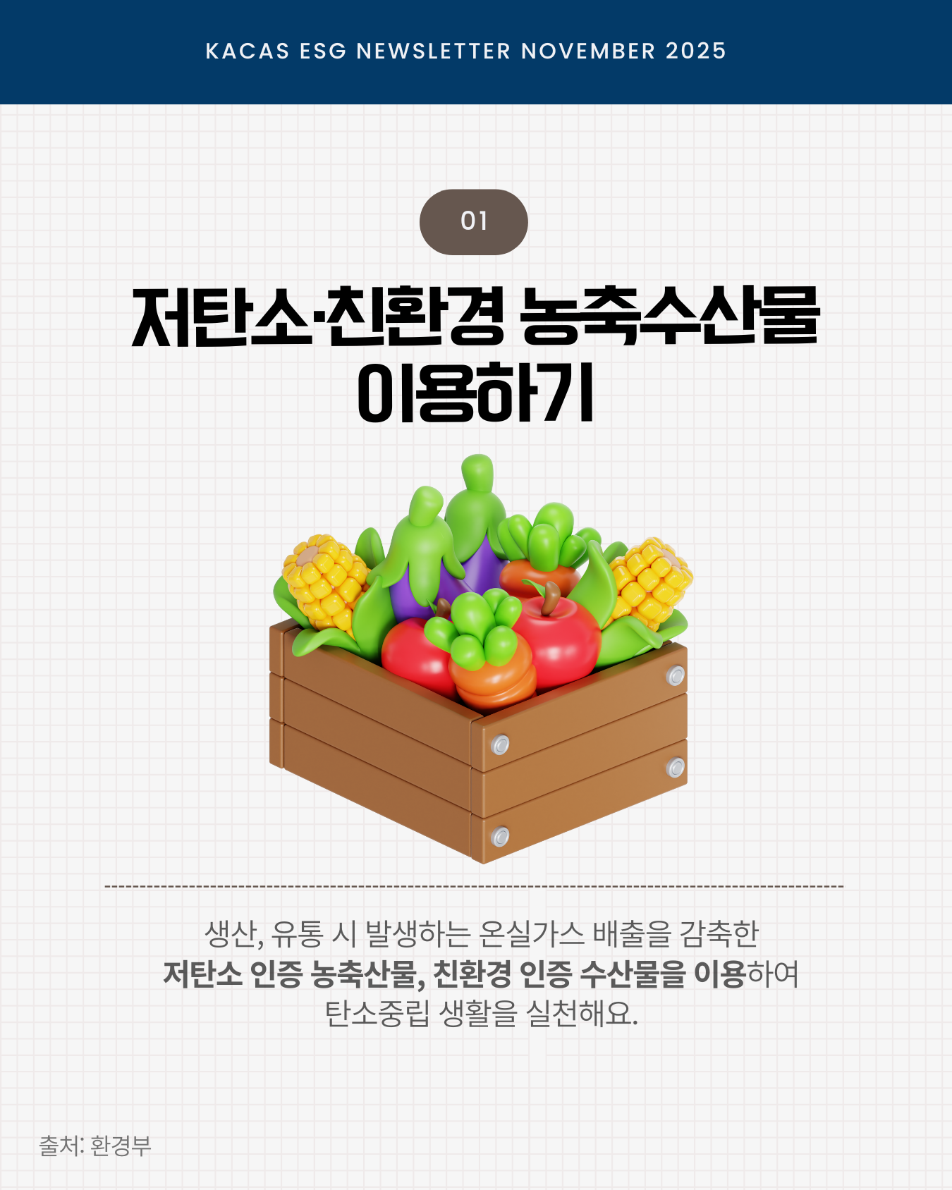 매월 ESG 뉴스레터는 공식 인스타그램(@kacas_official)에서도 만나볼 수 있습니다.