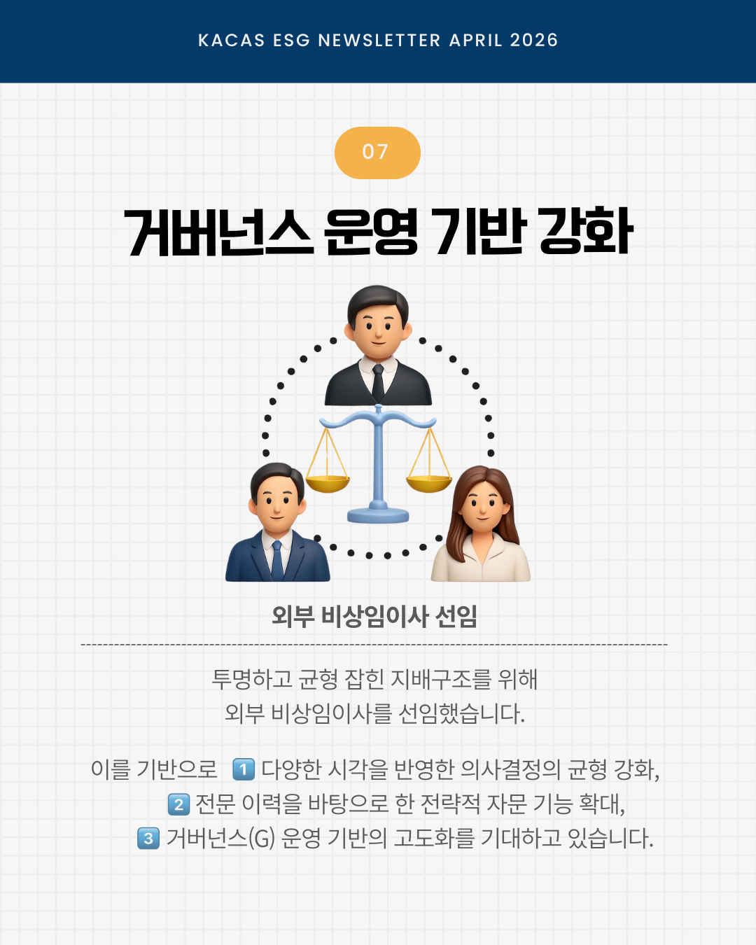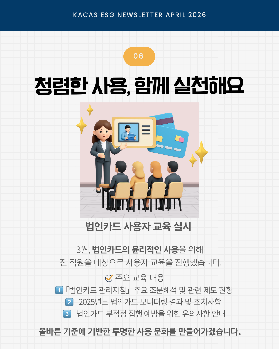 매월 ESG 뉴스레터는 공식 인스타그램(@kacas_official)에서도 만나볼 수 있습니다.
